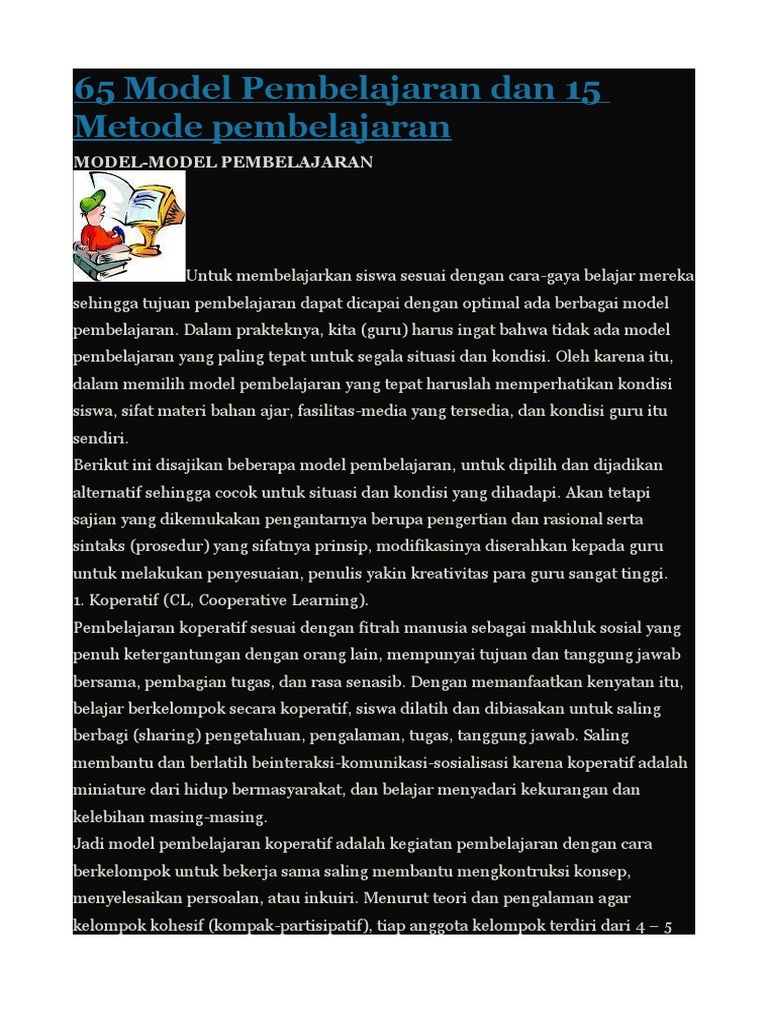 untuk "65 Model Pembelajaran / 3 Bab 7 Bab Ii Model Pembelajaran Belajar Siswa Memenhi Target Kkm Yaitu 65 Sebesar 95 Pdf Document - 65 model pembelajaran menyenangkan dan 15 metode pembelajaran pintar menurut pakar pendidikan part 2 monday, 14 march 2016 add comment."